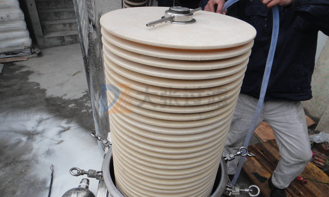 悬浮液用料泵送入纸板板框过滤器每个密闭的滤室,在压力作用下,滤液透过滤层及滤布、经滤布出液口排出,滤渣则留在滤框内,从而达到固液分离的目的。硅藻土过滤器滤框和滤板之间本身靠纸板或滤材密封,是一种过滤量比较大,过滤面积在2m2以上的不锈钢板框精密过滤机(又称不锈钢纸板滤机),下面配置了放置纸板固定横杆,安装放置滤材容易方便,用精密除菌纸板过滤各种保健酒、葡萄酒,可达除菌效果。