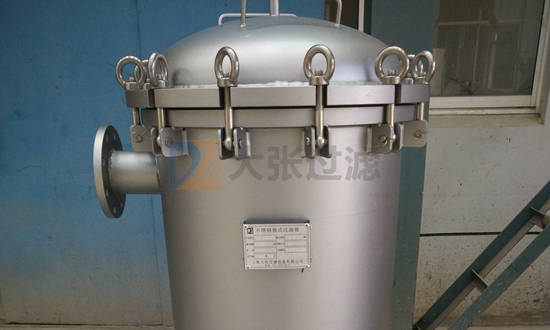 多袋式过滤器采用侧进底出方式(也可采用底进底出方式),通过管道中的压力将过滤液体介质压入或抽入过滤器桶体,要过滤的液体介质经由电抛光冲孔支撑滤蓝承托的过滤袋的过滤,产生理想的固液分离达到液体介质被过滤的效果。具有高通量、多次重复冲洗、长寿命、过滤精度优良、低廉的经济费用等特点,特别适用预过滤及洁净过滤。